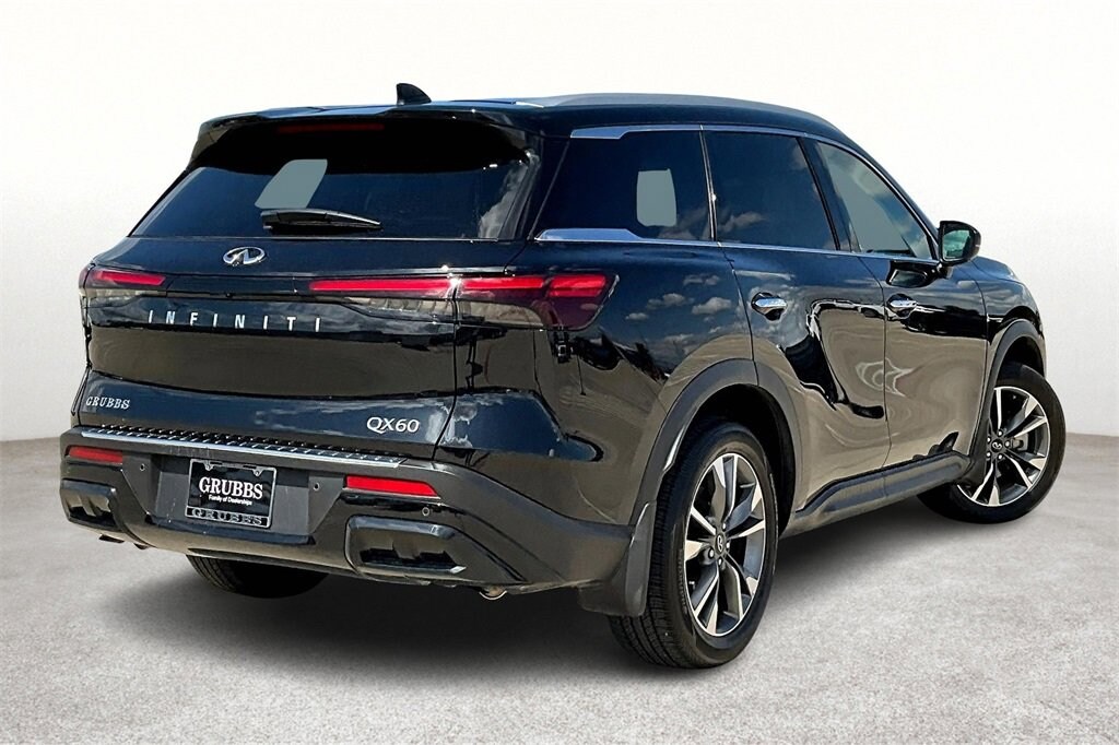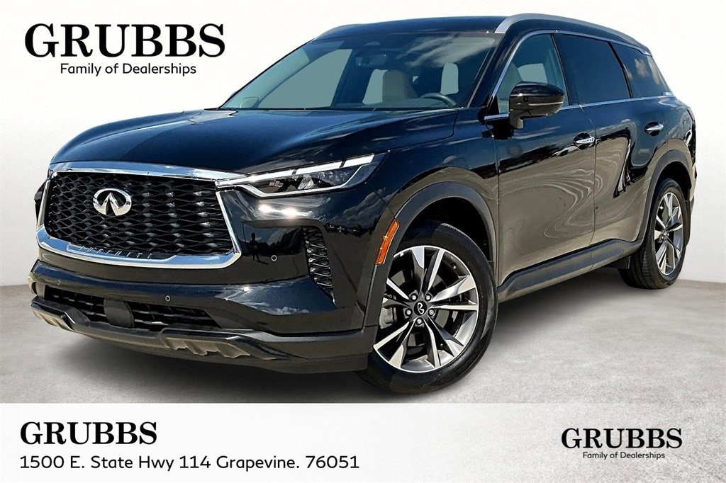 Grubbs INFINITI is pleased to present you with another Market Priced Pre-Owned Vehicle that has gone through our comprehensive 167 point safety inspection. This 2025 INFINITI QX60 LUXE is loaded with the following high value options Cargo Package (Cargo Mat (Reversible), Cargo Net, and First Aid Kit), INFINITI Certified Pre-Owned Certified, 17 Speakers, 3rd row seats: bench, 4-Wheel Disc Brakes, ABS brakes, Air Conditioning, Alloy wheels, AM/FM radio: SiriusXM, Anti-whiplash front head restraints, Apple CarPlay/Android Auto, Auto High-beam Headlights, Auto tilt-away steering wheel, Auto-dimming door mirrors, Auto-dimming Rear-View mirror, Automatic temperature control, Bose Performance Series 17-Speaker Sound System, Brake assist, Bumpers: body-color, Climate Controlled Front Bucket Seats, Delay-off headlights, Driver door bin, Driver vanity mirror, Dual front impact airbags, Dual front side impact airbags, Electronic Stability Control, Emergency communication system: INFINITI InTouch, Exterior Parking Camera Rear, Floor Mats w/Bench Seats on 3rd Row Tray, Four wheel independent suspension, Front anti-roll bar, Front Bucket Seats, Front Center Armrest, Front dual zone A/C, Front reading lights, Fully automatic headlights, Garage door transmitter: HomeLink, Heated door mirrors, Heated front seats, Heated rear seats, Heated steering wheel, Illuminated entry, Knee airbag, Leather Shift Knob, Leather steering wheel, Leather-Appointed Seating Surfaces, Literature Kit, Low tire pressure warning, Memory seat, Navigation system: INFINITI InTouch Navigation, Occupant sensing airbag, Outside temperature display, Overhead airbag, Overhead console, Panic alarm, Passenger door bin, Passenger vanity mirror, Power door mirrors, Power driver seat, Power Liftgate, Power moonroof, Power passenger seat, Power steering, Power windows, Premium Paint, Radio data system, Radio: Bose Performance Series, Rain sensing wipers, Rear air conditioning, Rear anti-roll bar, Rear reading lights, Rear seat center armrest, Rear side impact airbag, Rear window defroster, Rear window wiper, Reclining 3rd row seat, Remote keyless entry, Security system, Speed control, Speed-sensing steering, Speed-Sensitive Wipers, Splash Guards, Split folding rear seat, Spoiler, Steering wheel memory, Steering wheel mounted audio controls, Tachometer, Telescoping steering wheel, Tilt steering wheel, Traction control, Trip computer, Turn signal indicator mirrors, Variably intermittent wipers, Ventilated front seats, and Wheels: 20" x 8J Sporty Machined Aluminum Alloy.