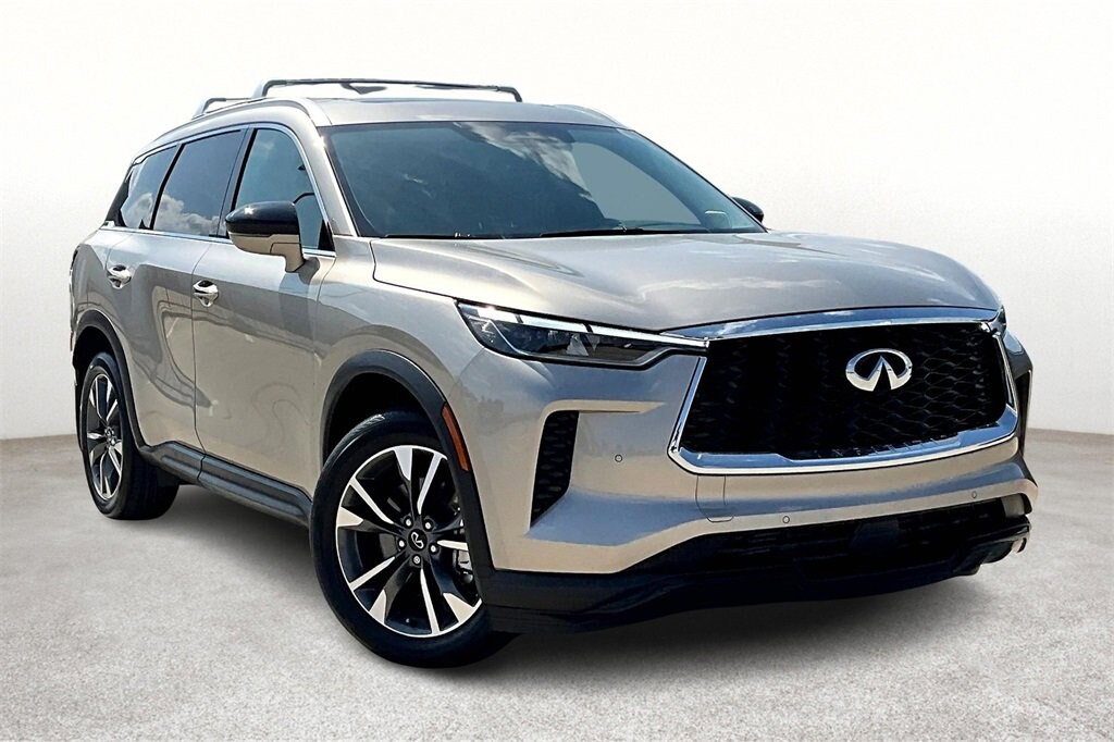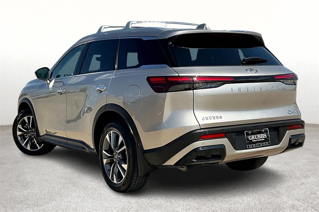 Grubbs INFINITI is pleased to present you with another Market Priced Pre-Owned Vehicle that has gone through our comprehensive 167 point safety inspection. This 2025 INFINITI QX60 LUXE is loaded with the following high value options INFINITI Certified Pre-Owned Certified, 17 Speakers, 3rd row seats: bench, 4-Wheel Disc Brakes, ABS brakes, Air Conditioning, Alloy wheels, AM/FM radio: SiriusXM, Anti-whiplash front head restraints, Apple CarPlay/Android Auto, Auto High-beam Headlights, Auto tilt-away steering wheel, Auto-dimming door mirrors, Auto-dimming Rear-View mirror, Automatic temperature control, Bose Performance Series 17-Speaker Sound System, Brake assist, Bumpers: body-color, Climate Controlled Front Bucket Seats, Delay-off headlights, Driver door bin, Driver vanity mirror, Dual front impact airbags, Dual front side impact airbags, Electronic Stability Control, Emergency communication system: INFINITI InTouch, Exterior Parking Camera Rear, Four wheel independent suspension, Front anti-roll bar, Front Bucket Seats, Front Center Armrest, Front dual zone A/C, Front reading lights, Fully automatic headlights, Garage door transmitter: HomeLink, Heated door mirrors, Heated front seats, Heated rear seats, Heated steering wheel, Illuminated entry, Knee airbag, Leather Shift Knob, Leather steering wheel, Leather-Appointed Seating Surfaces, Low tire pressure warning, Memory seat, Navigation system: INFINITI InTouch Navigation, Occupant sensing airbag, Outside temperature display, Overhead airbag, Overhead console, Panic alarm, Passenger door bin, Passenger vanity mirror, Power door mirrors, Power driver seat, Power Liftgate, Power moonroof, Power passenger seat, Power steering, Power windows, Radio data system, Radio: Bose Performance Series, Rain sensing wipers, Rear air conditioning, Rear anti-roll bar, Rear reading lights, Rear seat center armrest, Rear side impact airbag, Rear window defroster, Rear window wiper, Reclining 3rd row seat, Remote keyless entry, Security system, Speed control, Speed-sensing steering, Speed-Sensitive Wipers, Split folding rear seat, Spoiler, Steering wheel memory, Steering wheel mounted audio controls, Tachometer, Telescoping steering wheel, Tilt steering wheel, Traction control, Trip computer, Turn signal indicator mirrors, Variably intermittent wipers, Ventilated front seats, and Wheels: 20 x 8J Sporty Machined Aluminum Alloy. Clean CARFAX.