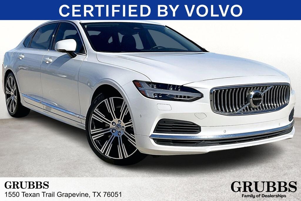 Certified. CARFAX One-Owner. Clean CARFAX. 2023 Volvo S90 Recharge Plug-In Hybrid Ultimate Crystal White Metallic Ultimate 2.0L I4 16V Turbocharged Automatic with Geartronic AWD 4D Sedan Grubbs Volvo Cars is proud to present you with another True Market Priced Pre-Owned Vehicle. This 2023 Volvo S90 Recharge Plug-In Hybrid Ultimate Volvo Certified Pre-Owned is loaded with the following Factory Options: S90 Recharge Plug-In Hybrid Ultimate, 4D Sedan, 2.0L I4 16V Turbocharged, Automatic with Geartronic, and AWD Lounge Package (Backrest Massage Front Seats, Luxury Rear Armrest, and Ventilated Rear Seats), S90 Recharge Plug-In Hybrid Ultimate, Volvo Certified Pre-Owned Certified, 4D Sedan, 2.0L I4 16V Turbocharged, Automatic with Geartronic, AWD, 14 Speakers, 4-Wheel Disc Brakes, ABS brakes, Active Cruise Control, Air Conditioning, Alloy wheels, Anti-whiplash front head restraints, Apple CarPlay/Android Auto, Auto High-beam Headlights, Auto-dimming door mirrors, Auto-dimming Rear-View mirror, Automatic temperature control, Bodyside moldings, Bowers & Wilkins Premium Sound, Brake assist, Bumpers: body-color, Delay-off headlights, Driver door bin, Driver vanity mirror, Dual front impact airbags, Dual front side impact airbags, Electronic Stability Control, Emergency communication system, Exterior Parking Camera Rear, Four wheel independent suspension, Four-C Adaptive Air Suspension, Front anti-roll bar, Front Bucket Seats, Front Center Armrest w/Storage, Front dual zone A/C, Front reading lights, Fully automatic headlights, Garage door transmitter: HomeLink, Genuine wood console insert, Genuine wood dashboard insert, Genuine wood door panel insert, harman/kardon® Premium Sound System, harman/kardon® Speakers, Heads-Up Display, Heated & Ventilated Front Bucket Seats, Heated door mirrors, Heated front seats, Heated rear seats, Heated steering wheel, Illuminated entry, Knee airbag, Low tire pressure warning, Memory seat, Mud Flaps, Navigation System, Navigation system: Sensus Navigation, Occupant sensing airbag, Outside temperature display, Overhead airbag, Panic alarm, Passenger door bin, Passenger vanity mirror, Perforated Nappa Leather Upholstery, Perforated Nappa Leather Upholstery w/Blond, Power door mirrors, Power driver seat, Power moonroof, Power Operated Tailgate, Power passenger seat, Power steering, Power windows, Radio data system, Rain sensing wipers, Rear anti-roll bar, Rear fog lights, Rear reading lights, Rear seat center armrest, Rear Window Blind, Rear window defroster, Remote keyless entry, Security system, Speed control, Speed-sensing steering, Split folding rear seat, Steering wheel mounted audio controls, Tachometer, Telescoping steering wheel, Tilt steering wheel, Traction control, Trip computer, Turn signal indicator mirrors, Variably intermittent wipers, Ventilated front seats, and Wheels: 20" 8 Multi-Spoke Black Diamond-Cut Alloy!!