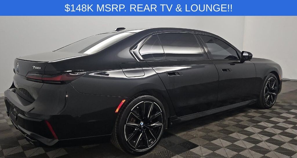 Clean CARFAX. Recent Arrival! 2024 BMW 7 Series 760i xDrive Black Sapphire Metallic 760i xDrive 4.4L V8 32V Twin Turbocharged 8-Speed Automatic Sport AWD 4D Sedan Grubbs Volvo Cars is proud to present you with another True Market Priced Pre-Owned Vehicle. This 2024 BMW 7 Series 760i xDrive is loaded with the following Factory Options: AWD and Black Leather Connected Package Pro, Driving Assistance Professional Package (Active Driving Assistant Pro and Highway Assistant), Executive Package (Automatic Doors, Crystal Headlights, and Front Massaging Seats), Luxury Rear Seating Package (Multifunction Rear Seats, Rear Massaging Seats, and Rear Ventilated Seats), M Sport Package Pro, M Sport Professional Package (Extended Shadowline Trim, M Sport Brakes w/Black Calipers, M Sport Pro Contents, and Rear Spoiler), Premium Package (DISC) (ACC Stop & Go + Active Driving Assistant, Parking Assistant Delete, Parking Assistant Professional, and Surround View w/3D View), Rear Executive Lounge Seating Package (BMW Theater Screen, Electric Reclining Seat & Footrest, and Executive Lounge Rear Center Console), AWD, Black Leather, 18 Speakers, 4-Wheel Disc Brakes, ABS brakes, Adaptive suspension, Air Conditioning, Alloy wheels, AM/FM radio: SiriusXM with 360L, Anthracite Alcantara Headliner, Anti-whiplash front head restraints, Apple CarPlay & Android Auto Compatibility, Auto High-beam Headlights, Auto tilt-away steering wheel, Auto-dimming door mirrors, Auto-dimming Rear-View mirror, Auto-leveling suspension, Automatic temperature control, BMW Curved Display w/HUD, Bowers & Wilkins Diamond Surround Sound System, Bowers & Wilkins Surround Sound, Brake assist, Bumpers: body-color, Carbon Fiber Trim w/Silver Thread & Piano Black, ConnectedDrive Services, Delay-off headlights, Driver door bin, Driver vanity mirror, Dual front impact airbags, Dual front side impact airbags, Electronic Stability Control, Emergency communication system: BMW Assist eCall, Extended Merino Leather Upholstery, Exterior Parking Camera Rear, Four wheel independent suspension, Front anti-roll bar, Front Bucket Seats, Front Center Armrest, Front dual zone A/C, Front reading lights, Front Ventilated Seats, Fully automatic headlights, Garage door transmitter, Genuine wood dashboard insert, Head restraints memory, Heads-Up Display, Heated door mirrors, Heated front seats, Heated rear seats, Heated steering wheel, Illuminated entry, Increased Top Speed Limiter, Leather steering wheel, Low tire pressure warning, Memory seat, Multi-Functional Seats, Natural Interaction, Navigation system: BMW Maps Navigation, Occupant sensing airbag, Outside temperature display, Overhead airbag, Overhead console, Panic alarm, Passenger door bin, Passenger vanity mirror, Personal eSIM 5G, Power adjustable front head restraints, Power door mirrors, Power driver seat, Power passenger seat, Power steering, Power windows, Radio data system, Radio: Audio System, Rain sensing wipers, Rear air conditioning, Rear anti-roll bar, Rear audio controls, Rear dual zone A/C, Rear reading lights, Rear seat center armrest, Rear Window Blind, Rear window defroster, Remote keyless entry, Security system, SiriusXM w/360L & 1 Year Platinum Plan Subscription, Speed control, Speed-sensing steering, Speed-Sensitive Wipers, Sport steering wheel, Steering wheel memory, Steering wheel mounted audio controls, Tachometer, Telescoping steering wheel, Tilt steering wheel, Traction control, Trip computer, Variably intermittent wipers, Ventilated front seats, Weather band radio, Wheels: 20" M Aerodynamic Bi-Color Style 907, and Wheels: 21" M Aerodynamic Jet Black Style 909!!