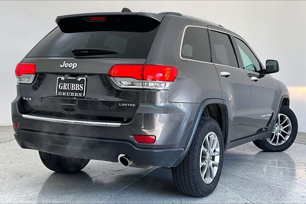 Recent Arrival! 2015 Jeep Grand Cherokee Limited Granite Crystal Metallic Clearcoat Limited 3.6L V6 24V VVT 8-Speed Automatic 4WD 4D Sport Utility Grubbs Volvo Cars is proud to present you with another True Market Priced Pre-Owned Vehicle. This 2015 Jeep Grand Cherokee Limited is loaded with the following Factory Options: Grand Cherokee Limited, 4D Sport Utility, 3.6L V6 24V VVT, 8-Speed Automatic, 4WD, Granite Crystal Metallic Clearcoat, and Black Leather Grand Cherokee Limited, 4D Sport Utility, 3.6L V6 24V VVT, 8-Speed Automatic, 4WD, Granite Crystal Metallic Clearcoat, Black Leather, 18" x 8.0" Aluminum Polished Wheels, 3.45 Rear Axle Ratio, 4-Wheel Disc Brakes, 6 Speakers, ABS brakes, Air Conditioning, Alloy wheels, AM/FM radio: SiriusXM, Anti-whiplash front head restraints, Audio memory, Auto-dimming door mirrors, Auto-dimming Rear-View mirror, Automatic temperature control, Brake assist, Bumpers: body-color, Compass, Delay-off headlights, Driver door bin, Driver vanity mirror, Dual front impact airbags, Dual front side impact airbags, Electronic Stability Control, Exterior Parking Camera Rear, Four wheel independent suspension, Front anti-roll bar, Front Bucket Seats, Front Center Armrest w/Storage, Front dual zone A/C, Front fog lights, Front reading lights, Fully automatic headlights, Garage door transmitter, GPS Antenna Input, Heated door mirrors, Heated front seats, Heated rear seats, Heated steering wheel, Illuminated entry, Knee airbag, Leather Shift Knob, Low tire pressure warning, Memory seat, Normal Duty Suspension, Occupant sensing airbag, Outside temperature display, Overhead airbag, Overhead console, Panic alarm, Passenger door bin, Passenger vanity mirror, Power door mirrors, Power driver seat, Power Liftgate, Power passenger seat, Power steering, Power windows, Premium Leather Trimmed Bucket Seats, Radio data system, Radio: Uconnect 5.0, Rear anti-roll bar, Rear Parking Sensors, Rear reading lights, Rear seat center armrest, Rear window defroster, Rear window wiper, Rear-View Auto-Dimming Mirror w/Microphone, Remote keyless entry, Roof rack: rails only, Security system, SIRIUSXM Satellite Radio, Speed control, Speed-Sensitive Wipers, Split folding rear seat, Spoiler, Steering wheel mounted audio controls, Tachometer, Telescoping steering wheel, Tilt steering wheel, Traction control, Trip computer, Turn signal indicator mirrors, and Variably intermittent wipers!!
