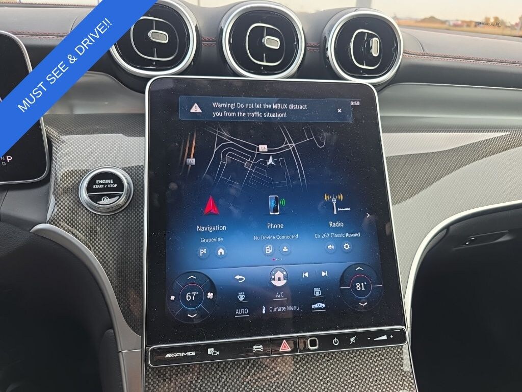 Clean CARFAX. Recent Arrival! 2024 Mercedes-Benz GLC 43 AMG® 4MATIC® Cirrus Silver Metallic GLC 43 AMG® 4MATIC® I4 9-Speed Automatic 4MATIC® 4D Sport Utility Grubbs Volvo Cars is proud to present you with another True Market Priced Pre-Owned Vehicle. This 2024 Mercedes-Benz GLC GLC 43 AMG® 4MATIC® is loaded with the following Factory Options: AMG® Night Package (Black Roof Rails), AMG® Night Package Plus (Black Model Badging and Darkened AMG® Grille), AMG® Optics Package, AMG® Performance Seat Package (AMG® Performance Seats), AMG® Performance Seat Package Advanced (Multicontour Functions and Ventilated Front Seats), AMG® Performance Studio Package, Driver Assistance Package (Active Lane Change Assist, Active Speed Limit Assist, BAS PLUS w/Cross-Traffic Assist, DISTRONIC PLUS® w/Steering Assist & Stop & Go Assist, PRE-SAFE® Brake w/Pedestrian Recognition, PRE-SAFE® Impulse Side, PRE-SAFE® PLUS, and Route-Based Speed Adaptation), Pinnacle Trim (Active Ambient Lighting, Augmented Video for Navigation, Burmester® 3D Surround Sound System, DIGITAL LIGHT w/Projections, Head-Up Display, Heat & Noise Insulating Glass, MBUX Navigation, Surround View System, and Transparent Front Hood), 11.9" Center Touchscreen Display, 4-Wheel Disc Brakes, 8 Speakers, ABS brakes, Adaptive suspension, Air Conditioning, Alloy wheels, AM/FM Radio, AM/FM radio: SiriusXM, AMG® Animated LED Logo Projector, AMG® Fuel Cap, AMG® Star Set, Apple CarPlay®/Android Auto®, Auto High-beam Headlights, Auto tilt-away steering wheel, Auto-dimming door mirrors, Auto-dimming Rear-View mirror, Auto-leveling suspension, Automatic temperature control, Axle Ratio: TBD, Black Rubber All-Weather Floormats (Set of 4), Black Seatbelts, Brake assist, Brushed Aluminum Running Boards, Bumpers: body-color, Child-Seat-Sensing Airbag, Compass, Delay-off headlights, Driver door bin, Driver vanity mirror, Dual front impact airbags, Dual front side impact airbags, Electronic Stability Control, Emergency communication system: eCall Emergency System, Exterior Parking Camera Rear, First Aid Kit, Four wheel independent suspension, Front anti-roll bar, Front Bucket Seats, Front Center Armrest, Front dual zone A/C, Front reading lights, Fully automatic headlights, Garage door transmitter: HomeLink, Genuine wood dashboard insert, Head restraints memory, Heated door mirrors, Heated front seats, Heated steering wheel, Illuminated entry, Knee airbag, Leather steering wheel, Leather Upholstery, Low tire pressure warning, MB-Tex/Microfiber Upholstery, Memory seat, Occupant sensing airbag, Outside temperature display, Overhead airbag, Overhead console, Panic alarm, Passenger door bin, Passenger vanity mirror, Power adjustable front head restraints, Power door mirrors, Power driver seat, Power Heated Front Bucket Seats, Power Liftgate, Power moonroof, Power passenger seat, Power steering, Power windows, Premium audio system: MBUX, Radio data system, Rain sensing wipers, Rear anti-roll bar, Rear fog lights, Rear reading lights, Rear seat center armrest, Rear Side Airbags, Rear window defroster, Rear window wiper, Red Brake Calipers, Remote keyless entry, Security system, SiriusXM Satellite Radio, Speed control, Speed-sensing steering, Split folding rear seat, Spoiler, Sport steering wheel, Steering wheel memory, Steering wheel mounted audio controls, Tachometer, Telescoping steering wheel, Tilt steering wheel, Traction control, Trip computer, Turn signal indicator mirrors, Variably intermittent wipers, Wheels: 20" AMG® Twin 10-Spoke, Wireless Android Auto®, and Wireless Apple CarPlay®!!