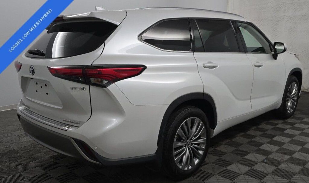 The sleek Off-white exterior complements the spacious and well-appointed interior, creating a harmonious blend of style and functionality. With seating for up to eight passengers and ample cargo space, this Highlander Hybrid Platinum is the perfect companion for your family adventures.