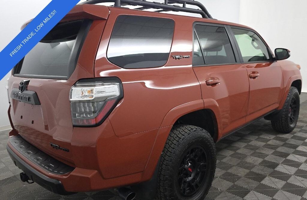 The exterior of the 4Runner TRD Pro exudes rugged sophistication, with its distinctive brown color and bold TRD Pro badging. The sleek and aerodynamic design, combined with the integrated roof rack, ensures both style and functionality.