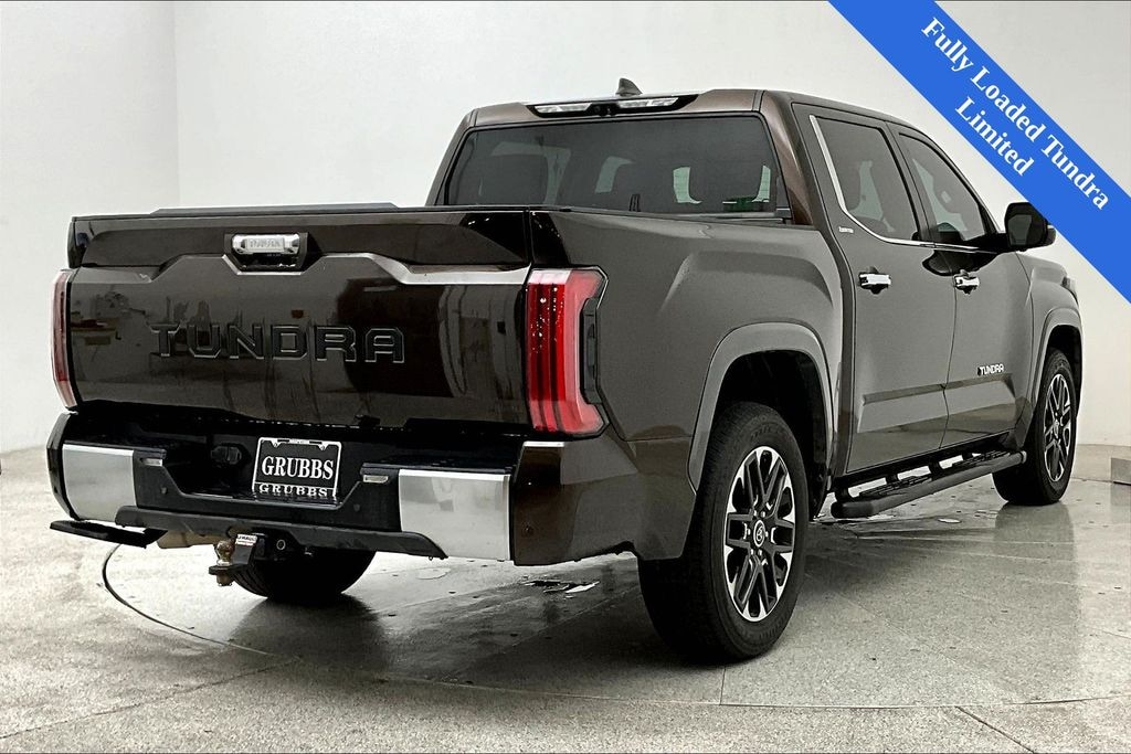 CARFAX One-Owner. 2024 Toyota Tundra Limited Brown Limited 3.4L V6 10-Speed Automatic RWD 4D CrewMax Grubbs Volvo Cars is proud to present you with another True Market Priced Pre-Owned Vehicle. This 2024 Toyota Tundra Limited is loaded with the following Factory Options: Black Artificial Leather Nightshade Package (Wheels: 20" x 8J Matte Black TRD Sport Style), Offroad Front Skid Plate, Panoramic View Monitor Package (Panoramic View Back Monitor), Power Package (400W/120V AC Deck & Cabin Power Supply and Qi-Compatible Wireless Charger), Security Package (TMS), Towing Package, Black Artificial Leather, 12 JBL Speakers, 20" x 8J Alloy Wheels, 3.31 Axle Ratio, 4-Wheel Disc Brakes, 9 Speakers, ABS brakes, Active Cruise Control, Air Conditioning, Alloy wheels, AM/FM Radio, AM/FM radio: SiriusXM, Apple CarPlay/Android Auto, Auto High-beam Headlights, Auto-dimming door mirrors, Auto-dimming Rear-View mirror, Automatic temperature control, Blind Spot Monitor, Brake assist, Bumpers: body-color, Delay-off headlights, Driver door bin, Driver vanity mirror, Dual front impact airbags, Dual front side impact airbags, Electronic Stability Control, Emergency communication system: Safety Connect (10-year trial), Exterior Parking Camera Rear, Front anti-roll bar, Front Bucket Seats, Front Center Armrest, Front dual zone A/C, Front fog lights, Front reading lights, Front wheel independent suspension, Fully automatic headlights, Garage door transmitter: HomeLink, Heated & Ventilated Front Bucket Seats, Heated door mirrors, Heated front seats, Illuminated entry, Knee airbag, Leather Shift Knob, Low tire pressure warning, Memory seat, Navigation System, Occupant sensing airbag, Outside temperature display, Overhead airbag, Overhead console, Panic alarm, Panoramic Sunroof & Moonroof, Passenger door bin, Passenger vanity mirror, Power door mirrors, Power driver seat, Power passenger seat, Power steering, Power windows, Radio data system, Rear reading lights, Rear seat center armrest, Rear step bumper, Rear window defroster, Remote keyless entry, Security system, Smart USB Phone Cables (TMS), SofTex Seat Trim, Speed control, Speed-sensing steering, Split folding rear seat, Steering wheel mounted audio controls, Tachometer, Telescoping steering wheel, Tilt steering wheel, Traction control, Trip computer, Turn signal indicator mirrors, Variably intermittent wipers, Ventilated front seats, and Voltmeter!!
